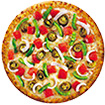 VEGGİE PİZZAPizzajo sos, mozerella,közlenmiş patlıcan, közlenmiş kırmızı yağ biberi,mantar zeytin,mısır,paprika mix
